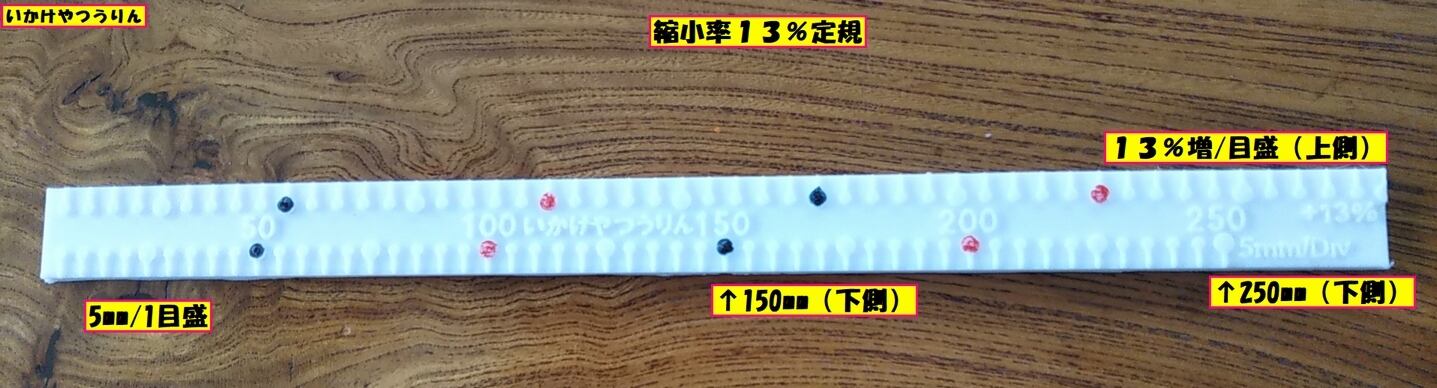 スケール上に実寸法と縮小率13%の目盛りを施した、陶芸家必携のスケールです。